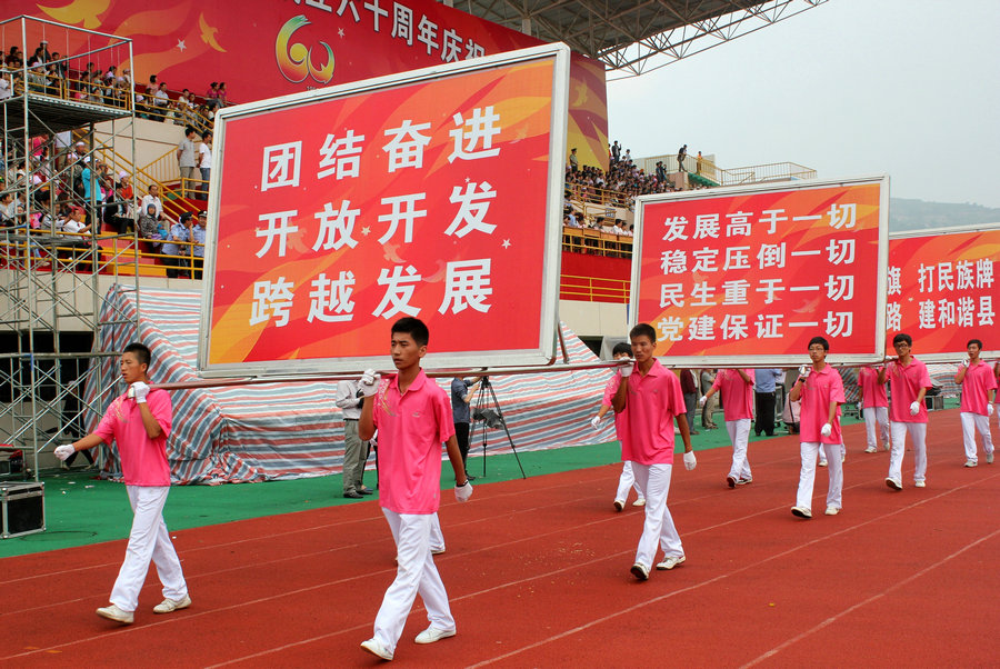 【县庆聚焦】张家川举行县庆方阵表演终场彩排(图)