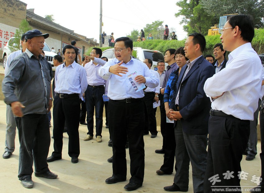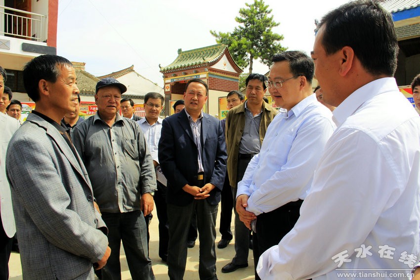 ▲大查大比活动中,县四大组织领导与大阳乡河李村村干部亲切交流