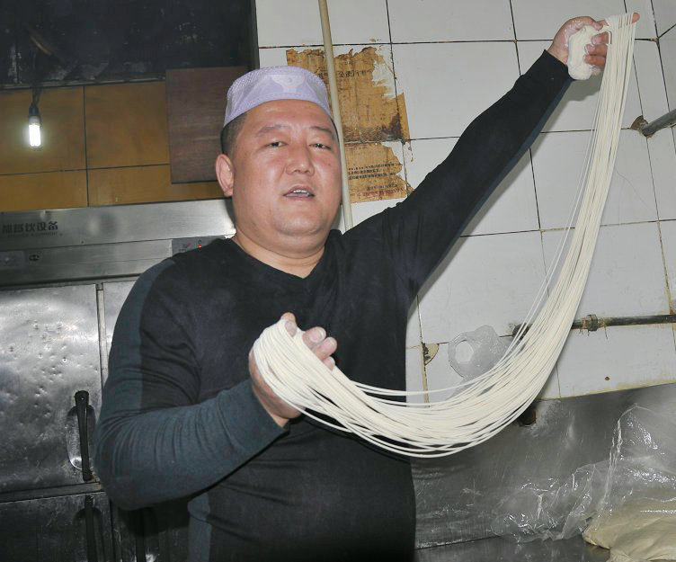 中国甘肃网1月10日讯 (记者 邵江梅 窦苗苗)甘肃张家川县木河乡坪王村马生龙大哥13岁就离家出外闯天下了,如今他已在北京著名的饮食一条街--牛街拥有一个可观的天天拉面馆,今年42岁的他有一个梦想,那就是把自己创办的开到全球穆斯林国家,让外国人好好瞧瞧咱中国人的本事。