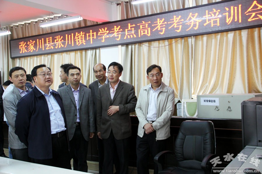 一年一度的高考即将开始,为确保2014年高考顺利进行,6月6日上午,张家川回族自治县委书记刘长江,县委副书记、县长马中奇,县委常委、政法委书记何永东,县委常委、宣传部长王志军,副县长苏华一行在县教体局、公安局、食药监局、交警队等相关部门负责人陪同下,就2014年张家川县高考工作准备情况进行了全面检查指导。