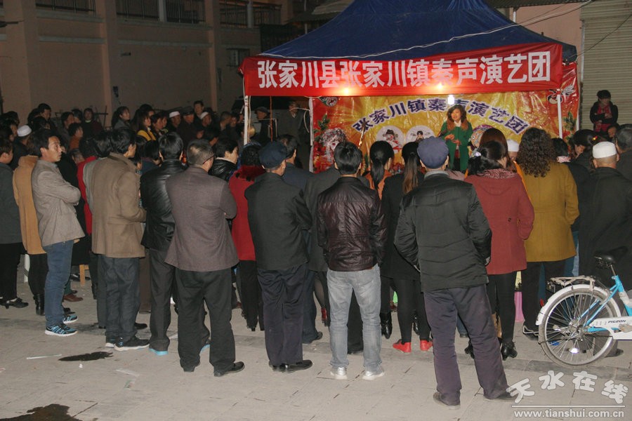 3月20日夜晚,阿阳县城华灯璀璨。笔者漫步于人潮涌动的县民族商贸城。忽然耳际飘来一阵粗犷苍凉的唱腔,伴随着一阵锣锣鼓鼓急促的敲击声,在二胡丝丝入扣的伴奏下,在清亮的木鱼打击声里,原来是张家川镇社区秦腔自乐班自导自演的秦腔晚会正如火如荼的上演,辛劳了一天的农民工窦建忠正在激情地演唱着秦腔《黑虎坐台》片段。那声音,那唱腔,那抑扬之间的音调,那雄浑的阳刚之气,挟裹着夜晚的习习凉风扑面而来。这声音,穿透民族商贸城的角角落落,飘荡在世世代代热爱张家川这片土地的人们的心中,飘荡在历史的文化血脉里。