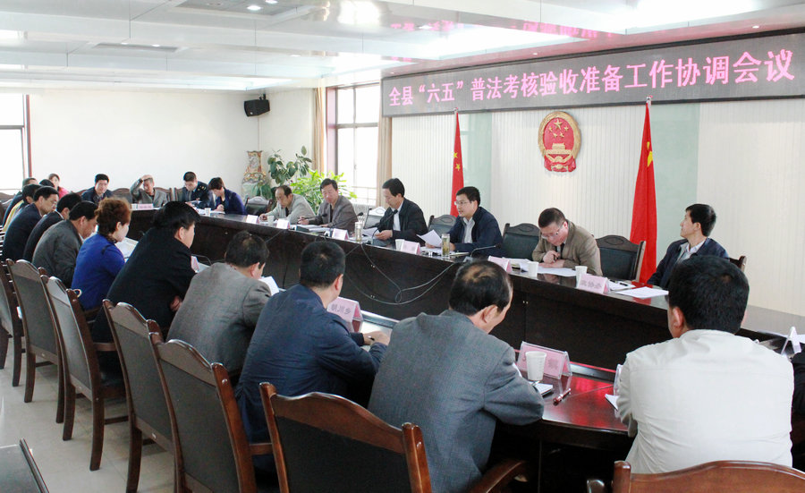 会议传达学习了市依法治市领导小组暨“六五”普法考核验收工作会议精神,安排部署了全县“六五”普法考核验收准备工作,并就“六五”普法重点工作任务进行业务辅导。