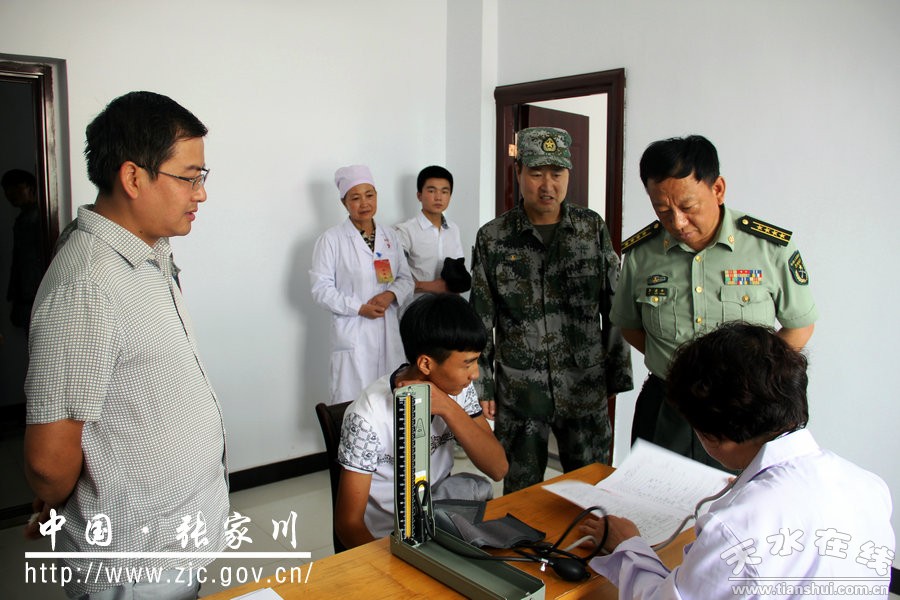 8月13日,张家川回族自治县征兵体检工作全面开始。天水市委常委、天水军分区司令员李建忠带领市公安局、市教育局、市卫计局等单位业务骨干组成的征兵工作组,深入张家川县检查征兵体检工作。县政府副县长李振、县人武部部长鲁国玺及人武部相关负责同志一同检查。