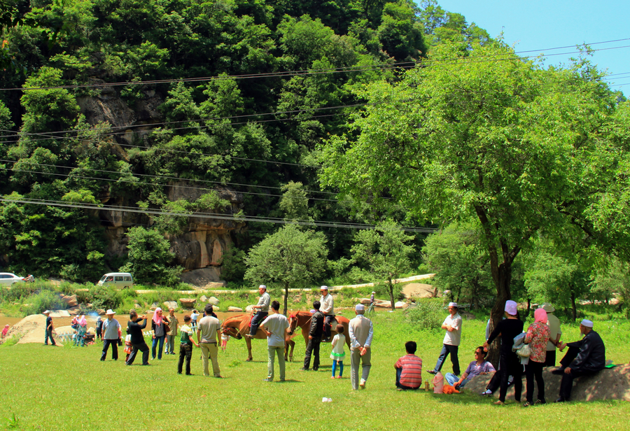 在寺湾景区的一个蒙古包旁边,数十名游客正在和牧马人商量价钱,准备体验骑马的乐趣。一位专程从天水市区来到景区旅游的游客说:“看到这里的山水,感觉跟做梦一样,下次有时间还要再来。”