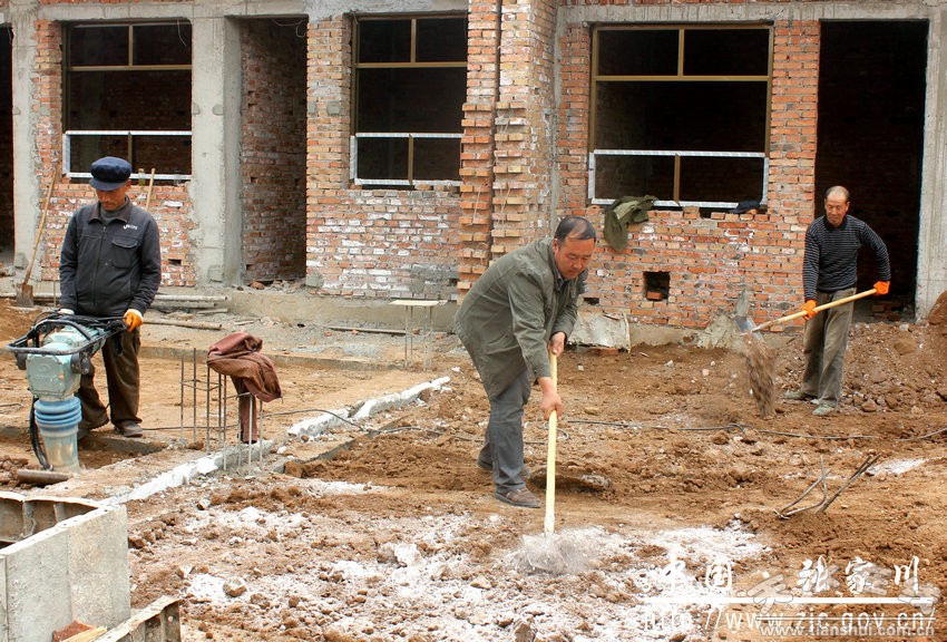 忙碌在新农村建设工地上的杨峰(图片居中者)