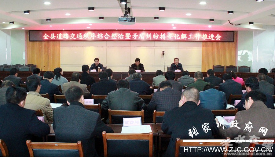 会议要求,要认清形势,切实增强全县道路交通秩序综合整治工作和矛盾纠纷排查化解工作的责任感和紧迫感,主动作为,迎难而上,奋力攻坚,务求实效,全力创造有序、安全、畅通、文明的道路交通环境。要加大执法力度,联合开展道路交通秩序综合整治行动,统筹协调,各负其责,密切配合,上下联动,突出重点,强化督导,依法严格查处违法违规行为,切实协调解决道路综合整治行动中的重大问题,确保道路交通秩序步入科学化、规范化、制度化轨道。要找准问题症结,大力加强矛盾纠纷排查化解工作和突出问题整治活动,严格实行清单管理、督办制度,明确负责牵头领导和主办单位,提出办理要求和时限,逐件挂牌销号。同时加强专业性、行业性人民调解组织建设,积极探索建立第三方参与社会矛盾化解的工作制度机制,严格落实矛盾纠纷排查化解月例会制度,狠下功夫解决非正常上访问题,全力确保社会大局持续稳定。要进一步统一思想,加强领导,靠实责任,明确目标,强化措施,积极作为,扎实工作,深入搞好道路交通秩序综合整治暨矛盾纠纷排查化解工作,全面完成各项工作任务, 努力创造安全畅通、和谐有序的道路交通环境,向县委、县政府及全县广大市民交一份满意的答卷,为建设平安张家川、文明张家川、幸福张家川做出新的更大贡献!