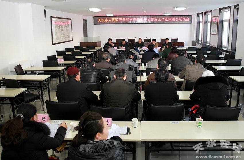 12月16日,天水市教育局副局长张笑青带领市公安局、安监局、交警队、食药监、交通局等相关部门负责人组成的学校冬季安全工作第一督查组,深入张家川县在县教体局、公安局、安监局、交警队、交通局、药监局、公安消防队等相关部门负责人的陪同下督查冬季学校安全工作。张家川县政府副县长杜根祥、县教体局、公安局等相关部门和单位负责人参加座谈会。
