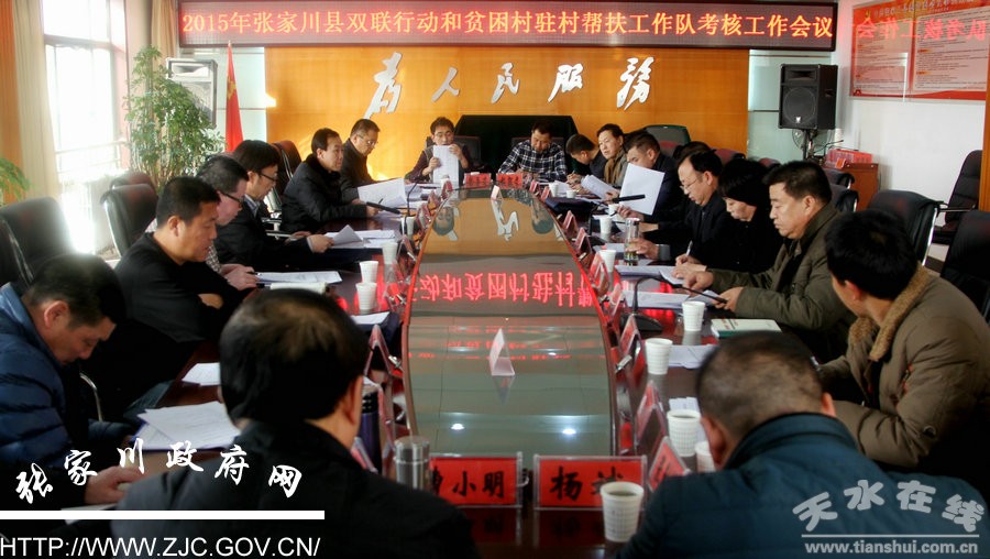 根据《中共甘肃省委联村联户为民富民行动协调推进领导小组关于做好2015年全省双联行动和贫困村驻村帮扶工作队考核工作的通知》精神,12月28日下午,2015年张家川回族自治县双联行动和贫困村驻村帮扶工作队考核工作会议在县行政中心四楼会议室召开,会上宣读了《张家川县双联行动2015年度考评工作方案》,并就考核工作有关事项进行了具体说明。省民委副巡视员余世勇出席会议并讲话,县委副书记妥国保主持会议。省直和市直各联村单位有关负责人,县委常委、副县长马玉凤,县政协副主席王存珠及县委“双联”办有关人员参加会议。