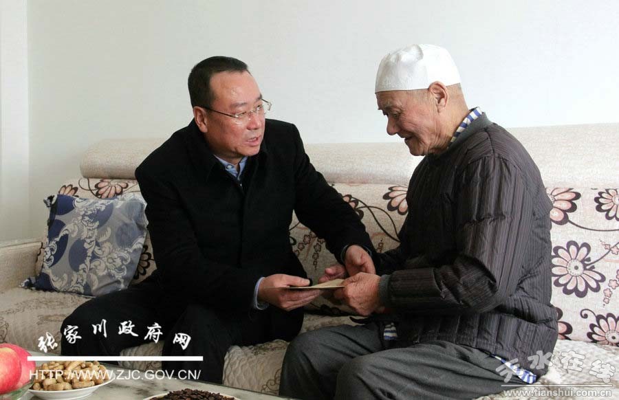春节即将来临之际,1月29日,张家川回族自治县县委副书记、代县长马筱宁深入龙山镇和张川镇,先后走访慰问了部分复原军人、烈士遗属、高龄老人、老干部、退伍军人和宗教活动场所,为他们送去党和政府的温暖及新春祝福。县政府副县长唐宇宏、县政府办、县林业局、县民宗局、县国税局和相关乡镇负责人一同参加慰问。