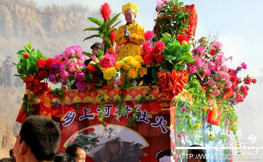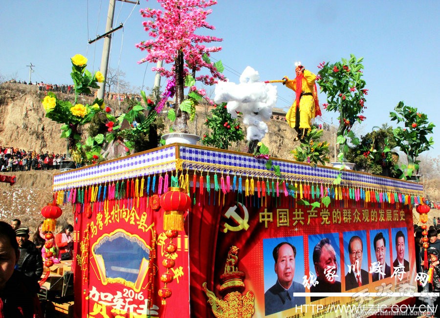 2月15日,农历正月初八,张家川回族自治县马关乡西台村顿时成为一片欢乐的海洋,人山人海、炮声震天,当地农民群众采取舞长龙、装彩车、耍狮子、撑旱船、扮假面、踩高跷、扭秧歌等各种形式庆祝一年一度的传统节日——“上八”,拉开了张家川县春节社火表演的大幕。