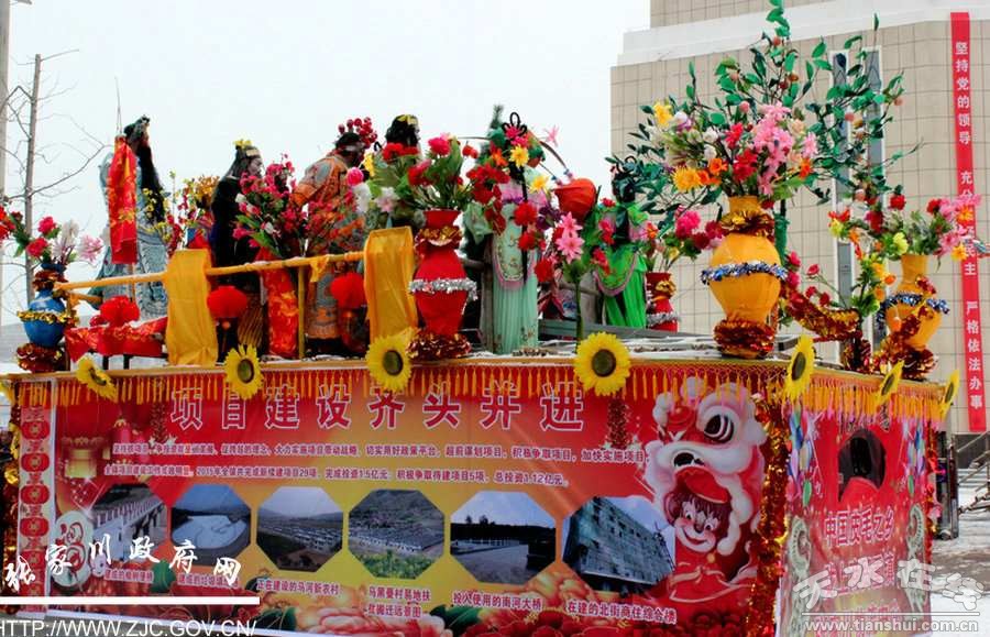 早上10时许,社火表演正式开始。来自全县县直单位、乡镇、企业、民间组织及邻县的社火队按照既定路线有序经过县影视中心评比台。炮声阵阵,锣鼓喧天,县城节日气氛顿时达到了高潮。