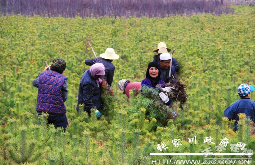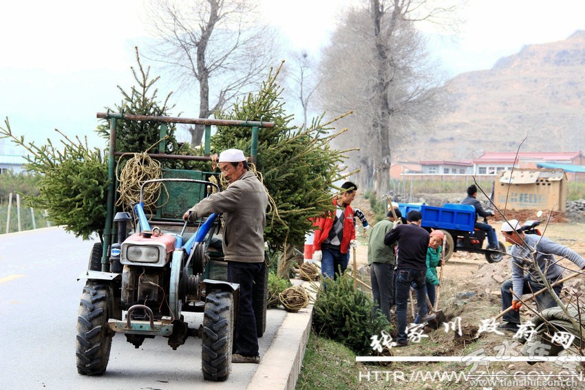 4月3日,清明假期第一天,张家川回族自治县马鹿镇全镇干部放弃休息,和当地群众一起,在省道305公路两侧挖坑、灌水、栽树。笔者在现场看到,十几辆运送树苗和拉水的拖拉机来回穿梭,数千名干部和农民群众正在林业技术员的指导下,挖坑、扛树、灌水、铲土栽植,男女老少个个干劲十足,赶时间植树。