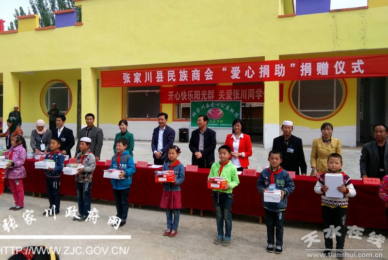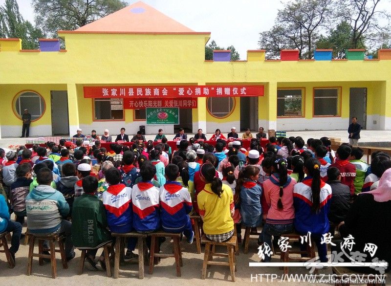全省民族工作暨“两个共同”示范区建设现场会在张家川回族自治县召开的喜庆气氛还未消退,5月19日,张家川县民族商会又在第十三个民族团结进步宣传月里给省民委帮扶的张家川县张棉乡带去了节日般地快乐。张棉乡马窑小学的163名受助学生在这一天得到了由县民族商会捐赠的价值一万余元的学习用品和生活用品,在六一儿童节到来之际,提前享受了节日的快乐。