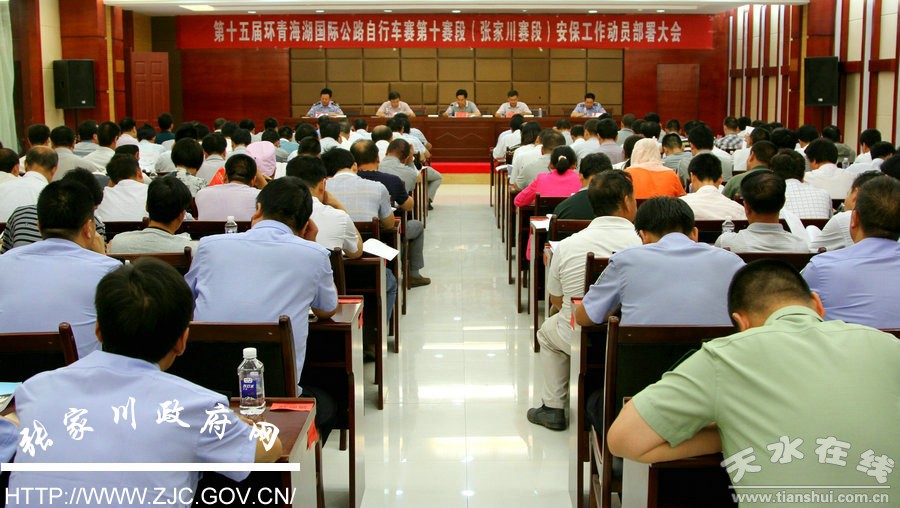 第十五届环青海湖国际公路自行车赛将于7月27日上午途径张家川回族自治县。为确保该项国际体育赛事在我县境内安全有序进行,7月25日下午,第十五届“环湖赛”张家川赛段安保工作动员部署会在回乡风情园会议室召开。县委常委、政法委书记何永东主持会议,副县长李振、苏华出席会议。县直各部门、各乡镇、各学校(学区)负责人,县公安局16位赛段执勤组组长、督察组长共130 余人参加会议。