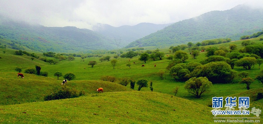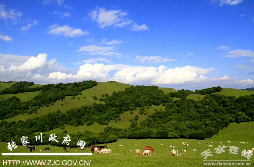 秦家塬是张家川县关山大景区的核心景区之一,位于张家川县恭门镇东北处。这里冬春无界,夏秋相连,“关山六月寒凝霜”是其真实写照。秦家塬风光静美,葱岭、山花、溪水、古树,如诗如画;这里文化积淀深厚,秦人牧马滩、丝绸之路、唐蕃古道,一草一木,一石一砖都吟唱着一曲历史长歌。相传秦始皇的祖先秦非子在这里为周王牧马,因此得名。秦家塬景区有秦皇牧场、关陇古道、关山风光大道等多处名胜。