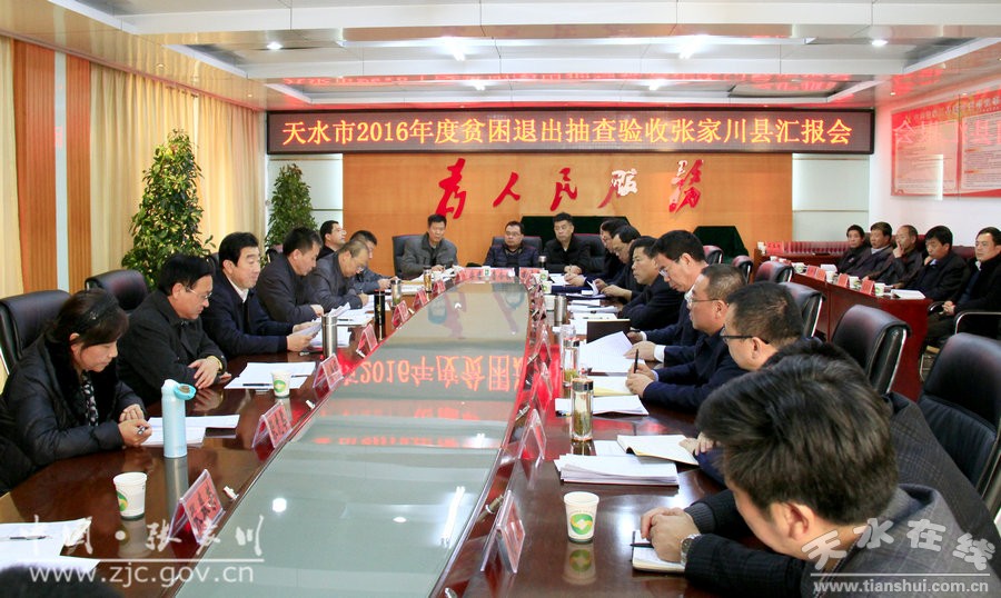 12月1日,天水市副市长霍卫平带领全市2016年度贫困退出第二抽查验收组在张家川县开展贫困人口、贫困村脱贫退出抽查验收工作。县委书记陈晰,县委副书记、县长马筱宁等县委,县政府主要领导和分管领导,15个乡镇党委书记参加了天水市2016年度贫困退出抽查验收张家川汇报会。