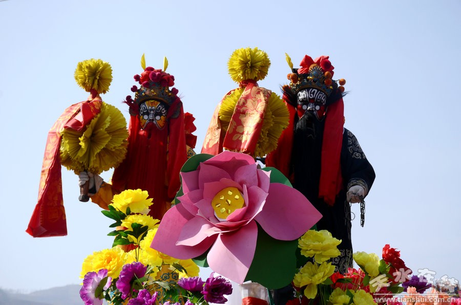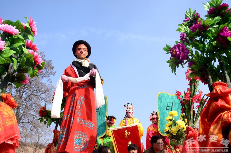 今年的社火处处凸显党的十八大精神,“建设和谐新农村”、“诚实守信、勤劳致富”、“构建和谐新农村”等字眼引人注目,表达着老百姓全面建成小康社会的喜悦之情。而庄浪县高庙村的社火队也打出了他们庄浪县的宣传广告“与时俱进弘扬梯田精神,万众一心构建和谐家园”。