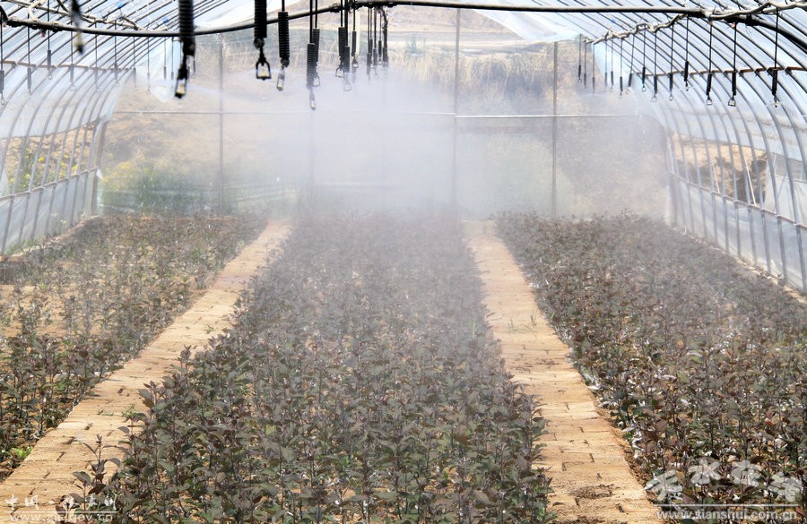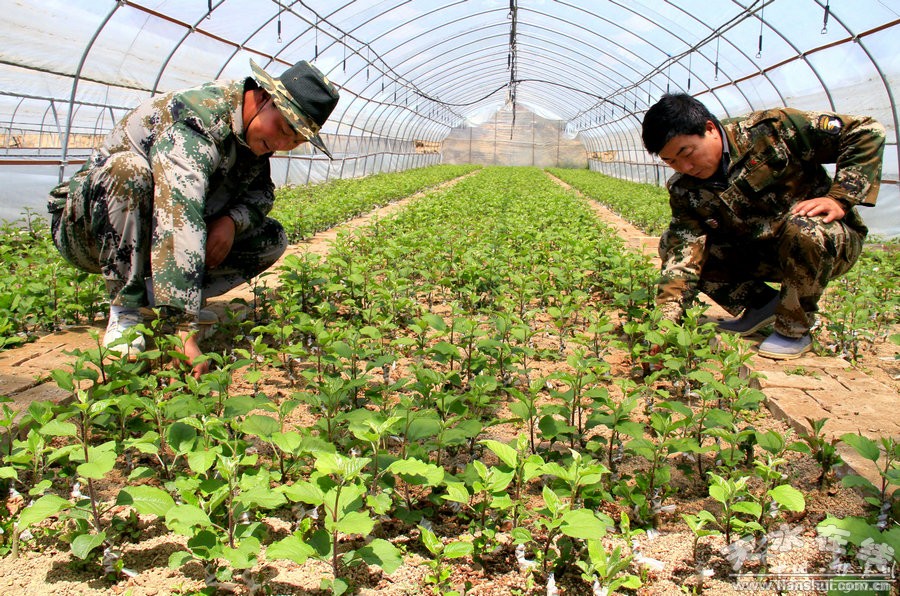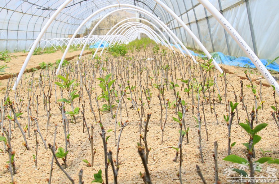 5月8日,在张家川县龙山镇马河村现代果业示范园区,果农在育苗大棚内查看扦插的苹果树幼苗。近年来,张家川县大力发展现代高优农业,于2013年在龙山镇启动面积千亩现代果业示范园区。该示范园区共分为花牛苹果园、设施樱桃园、育苗园、川区矮密苹果园、山地矮密苹果园、管理区六大区域,是集果品生产、科技示范、生态旅游、产业发展为一体的现代农业示范园区。