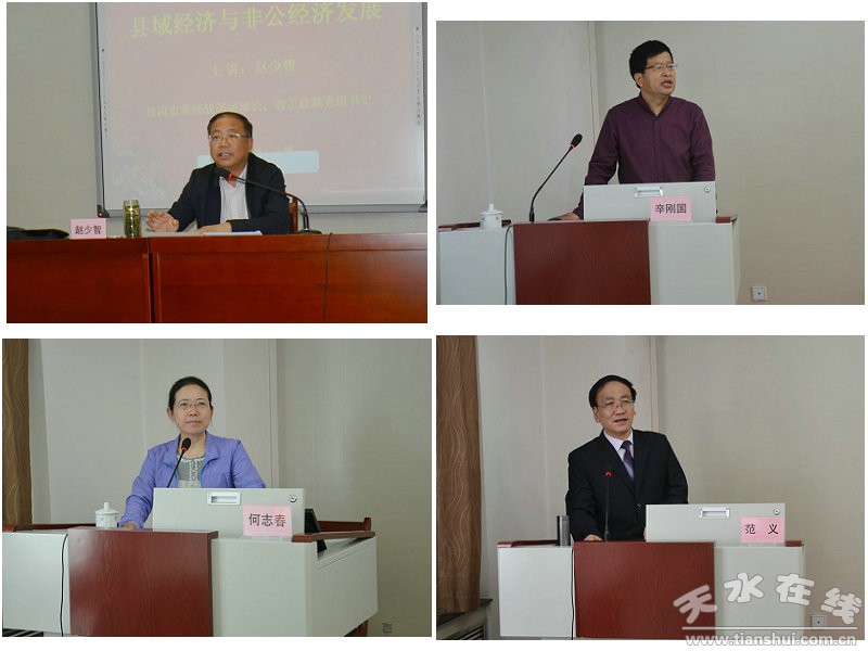 培训采取实地观摩、现场教学、集中授课的方式,省委统战部副部长、省工商联党组书记赵少智围绕《县域经济与非公经济发展》;甘肃省社会主义学院常务副院长、教授、博士辛刚国围绕《适应新常态,建立“亲”、“清”新型政商关系》;省委党校法学教研部副主任、教授、硕导何志春围绕《全面推进守法诚信专题讲座》;甘肃行政学院领导科学研究中心主任、教授范义围绕《持续有效推进精准扶贫的思路与对策》为学员们做了精彩深刻的讲解。