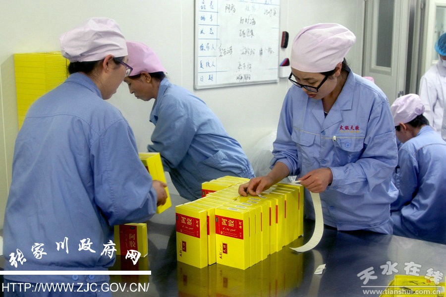 太极集团是中国西部规模最大的医药集团,位列中国医药工业10强之一、中药工业企业第1位。2011年,经过张家川县政府、企业历时近半年的反复协商、规划筹备,最终达成合作共识,由重庆太极集团重组天水益生阿胶厂,组建甘肃天水羲皇阿胶有限公司,同时计划改扩建900吨阿胶生产线,项目计划总占地418.6亩,总投资5.326亿元,分三期建设。通过几年的发展,如今的太极集团羲皇阿胶有限公司已具规模。目前,一、二期已竣工投产,主要生产“西阿”、“天胶”和“太极男人胶(鹿角胶)”,三期正在建设当中,主要研发阿胶软糖、阿胶口含片、阿胶露、太极元早餐、阿胶颗粒等5个系列产品,一、二、三期全部建成达产后,年产阿胶达900吨,实现年产值30亿元,利税1.5亿元,解决就业3000余人。