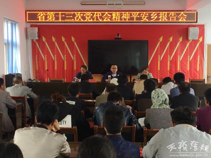 马效军强调,要以习近平总书记视察甘肃重要讲话和“八个着力”重要指示精神为根本遵循,全面落实好省第十三次党代会确定的“八个方面”的重点工作,奋力开创各项事业发展新局面。平安乡要把贯彻落实好党代会精神,作为当前各项工作的重中之重,不断完善发展思路和战略布局,把学习贯彻省党代会精神与县第十三次党代会确定的目标任务结合起来,与推动各项工作结合起来,努力在发展现代农业、加快脱贫攻坚、加强生态环境保护、保障和改善民生、维护社会和谐稳定、持续改进作风上取得新成效。在思路上领会党代会精神,在作风上适应党代会精神,在落实上服从党代会精神,以自身的行动践行党代会精神,努力推动全乡各项工作上水平。 (通讯员 李锐)