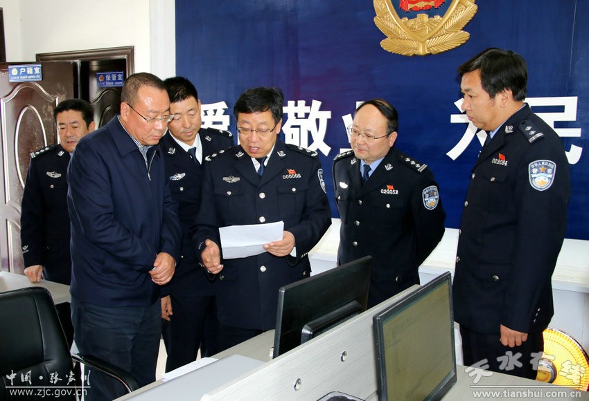 11月14日,甘肃省公安厅副厅长李晓林、监管总队政委李逢春、出入境管理局副局长刘军等一行赴张家川县调研全县公安工作。天水市公安局局长马瑛、副局长刘宗林;县委副书记、县长马筱宁,县委常委、政法委书记高建平,副县长马国杰,县公安局负责人参加调研。
