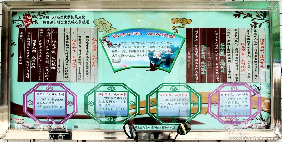 ▲ 张家川县中街清真寺制作社会主义核心价值观宣传牌,将社会主义核心价值观宣传融入寺院管理。