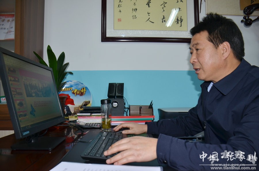 (马玉忠在电脑上制作上磨小学幻灯片)