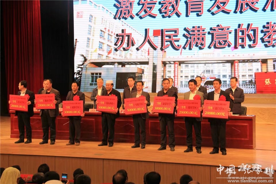 (县委、县政府表彰奖励,图右二为马玉忠代表胡川学区领奖)