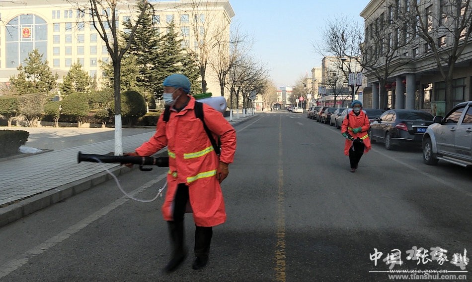 连日来,张家川县出动高压雾炮车、洒水车等100余辆次,出动人员300余人次,对城区主街道、人行道、背街小巷、居民小区等区域开展全方位、立体式、不留死角的消杀灭菌工作。对城区公厕、垃圾桶、垃圾中转站等设施由环卫工人进行人工喷雾消杀。