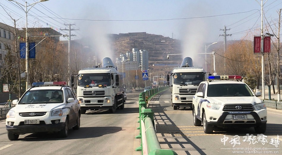 疫情就是命令,防控就是责任。为进一步做好新型冠状病毒肺炎疫情防控工作,最大程度遏制病毒通过空气传播蔓延,保障全县人民群众生命安全和身体健康。从2月9日起,张家川县进一步加大城区防疫消杀力度,由原来的每日2次增加到每日4次,实施消杀剂溶液喷洒消毒。