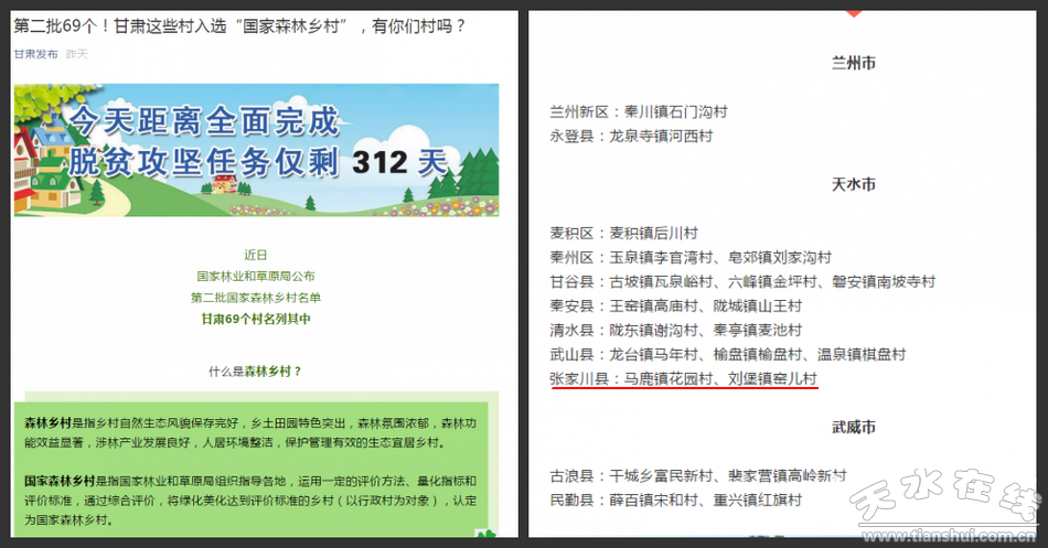 近日,国家林业和草原局公布了第二批国家森林乡村名单,甘肃省共有69个行政村获此称号。其中,张家川县马鹿镇花园村、刘堡镇窑儿村2个行政村榜上有名。被认定为国家森林乡村可按照统一标识制作和使用国家森林乡村牌匾。