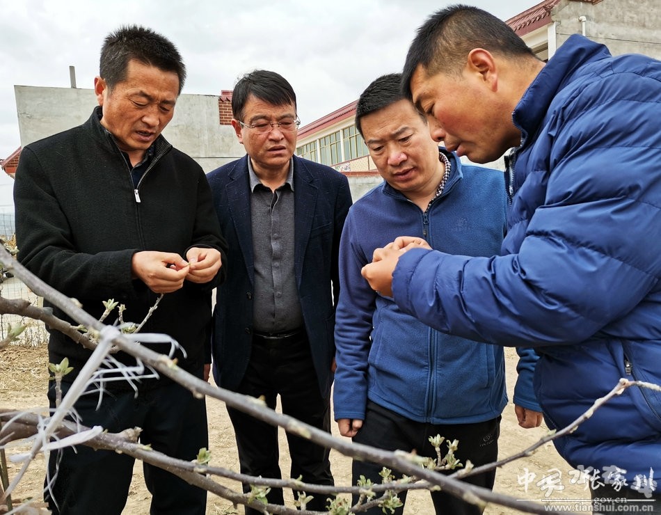 4月13日,张家川县委副书记陈海龙、县政府副县长张树增带领县农业农村局负责人及技术人员,深入全县部分果园察看低温冻害灾情造成的损失情况,并要求县农业农村积极协调相关保险公司,组织人员及时开展灾情勘察、理赔等工作,切实将损失降到最低。