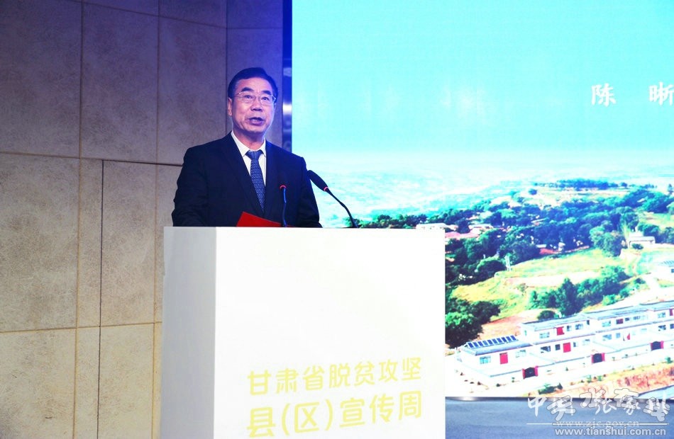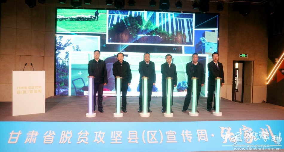 省委宣传部副部长、省政府新闻办主任郭锦诗宣布张家川县脱贫攻坚宣传周活动正式启动,并与省委政法委常务副书记李韵东,甘肃日报社社长、甘肃日报报业集团公司党委书记、董事长王光庆,全国贫困地区干部培训学院兰州分院院长迭目江腾,天水市副市长逯克宗,县委书记陈晰启动了张家川县脱贫攻坚主题成就展线上展。