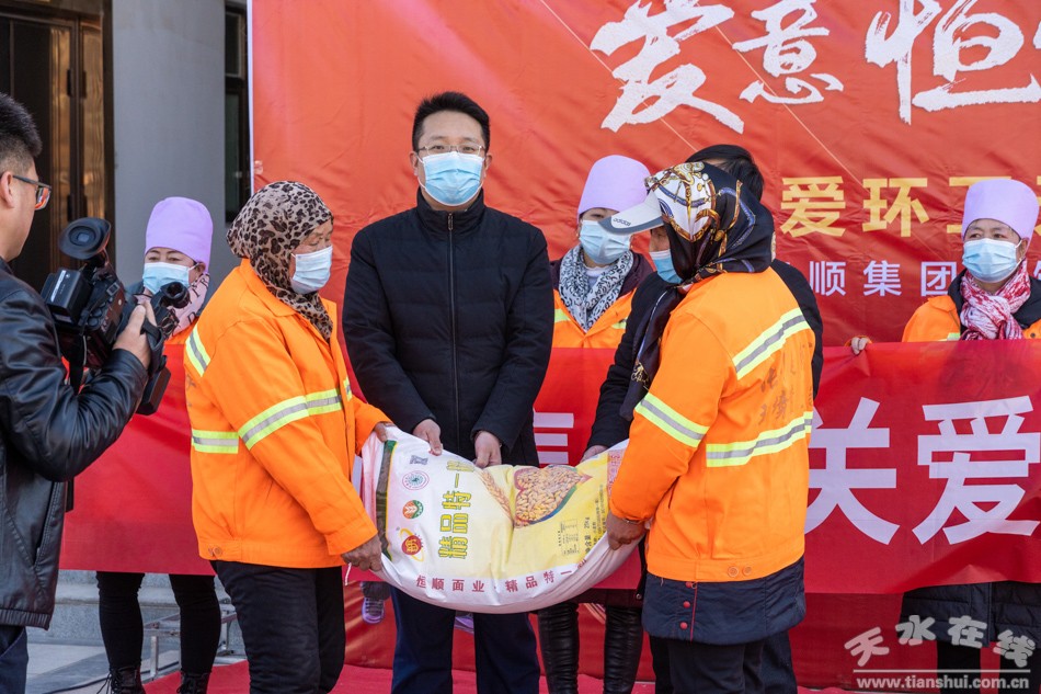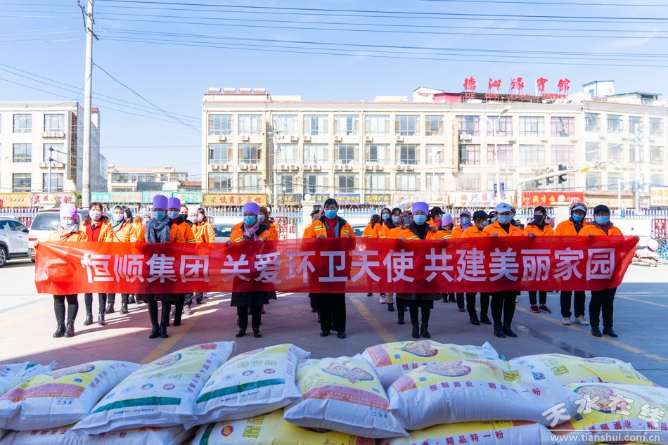 2月5日,在恒顺集团董事长马志忠先生“不忘初心、不忘本源”指示下,恒顺集团来到了马志忠先生的家乡张家川,集团人力行政中心负责人李肖代表集团董事长马志忠先生及全体员工对张家川县环卫工人进行了亲切慰问,给环卫工代表现场发放了精品面粉,表达了恒顺集团对张家川县环卫工人爱岗敬业、默默奉献的敬意,传达了对环卫工人身体健康与工作安全的关心,在寒冷的冬日,为张家川县环卫工人送上一份温暖和关怀。