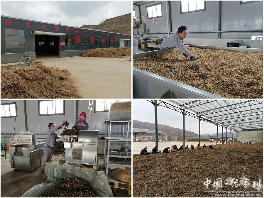 在大阳镇大阳村,天水圣慈药业有限公司扶贫车间里,工人师傅们忙碌地重复着分拣、冲洗、晾晒、切片、装箱等中药饮片加工工序。伴随着生产机器轰鸣地运转声,不时传来工人师傅们的欢声笑语。在他们劳作闲余之时,记者采访了该公司员工党永吉。他告诉记者,他老家是平安乡水泉村人,他在该公司上班两年了,每年工资大约是三四万元,包吃住,这是净收入,不出门就能在家门口赚上钱。