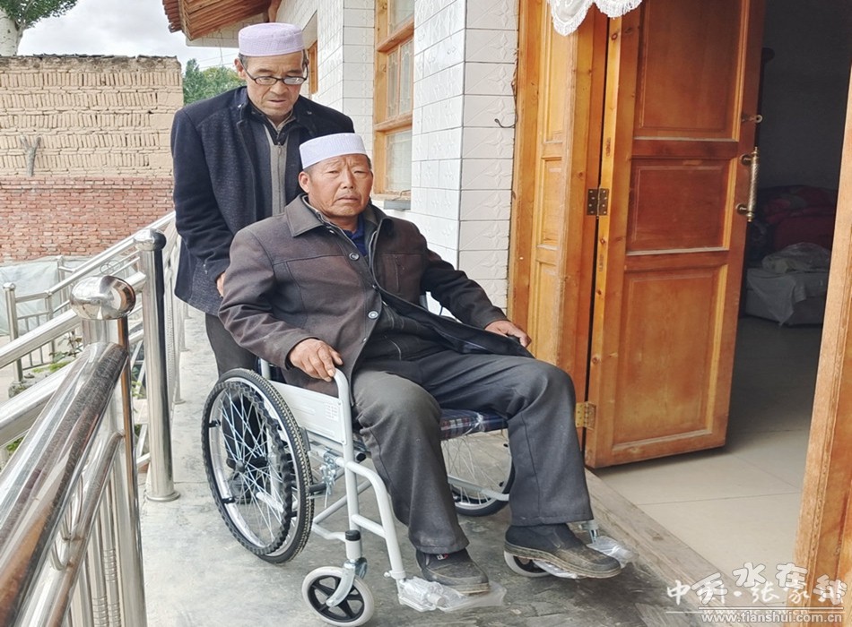 杨目沙老人是潘峪村六组村民,因一次意外摔伤,双腿落下残疾,行走不便,2020年6月份,他享受到了残疾人无障碍改造项目,给他配备了移动热水器、拐杖、坐便椅、方便靠背等生活用具。“共产党对我们格外关怀,给了好多生活用具,今年帮扶我的干部还给我协调发放了轮椅,有了这些东西我行动、生活方便了很多。”杨目沙说。