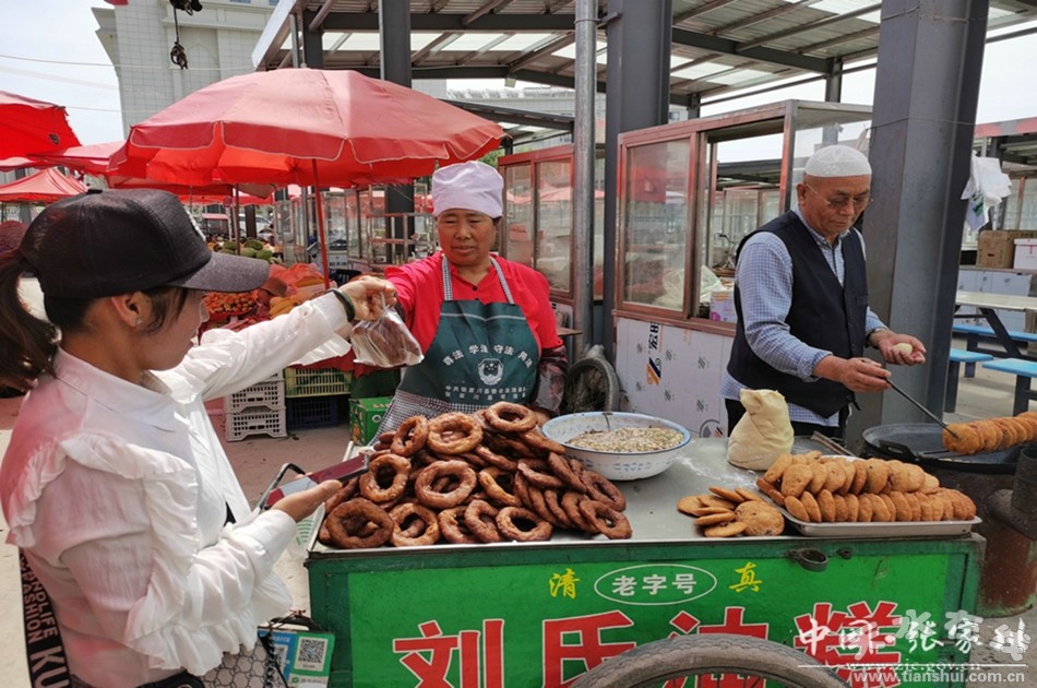 中华民族的传统节日端午节临近,张家川县农贸综合市场里赶集的人们熙熙攘攘,摊点上商贩和顾客有说有笑,热闹非凡。