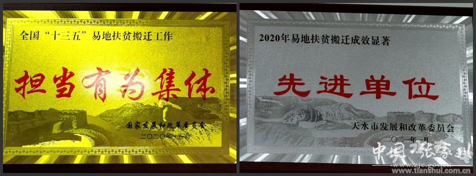 2020年,县发改局被评为全国“十三五”易地扶贫搬迁工作担当有为集体;被市发改委评为2020年易地扶贫搬迁成效显著先进单位。