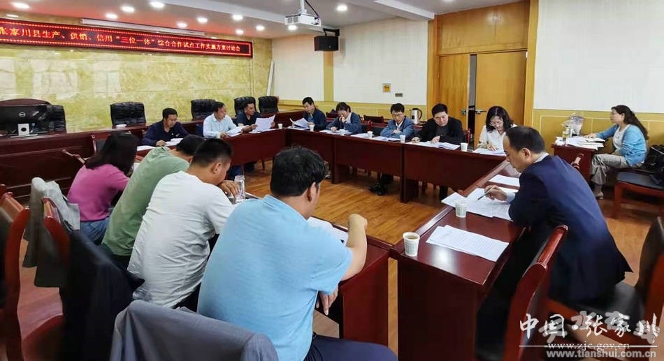 近日,张家川县召开生产、供销、信用“三位一体”综合合作试点工作讨论会,张家川县供销社、农业农村局、财政局、市场监管局、乡村振兴局、畜牧中心、科协、农村信用合作社、商务局等单位负责同志参加会议。