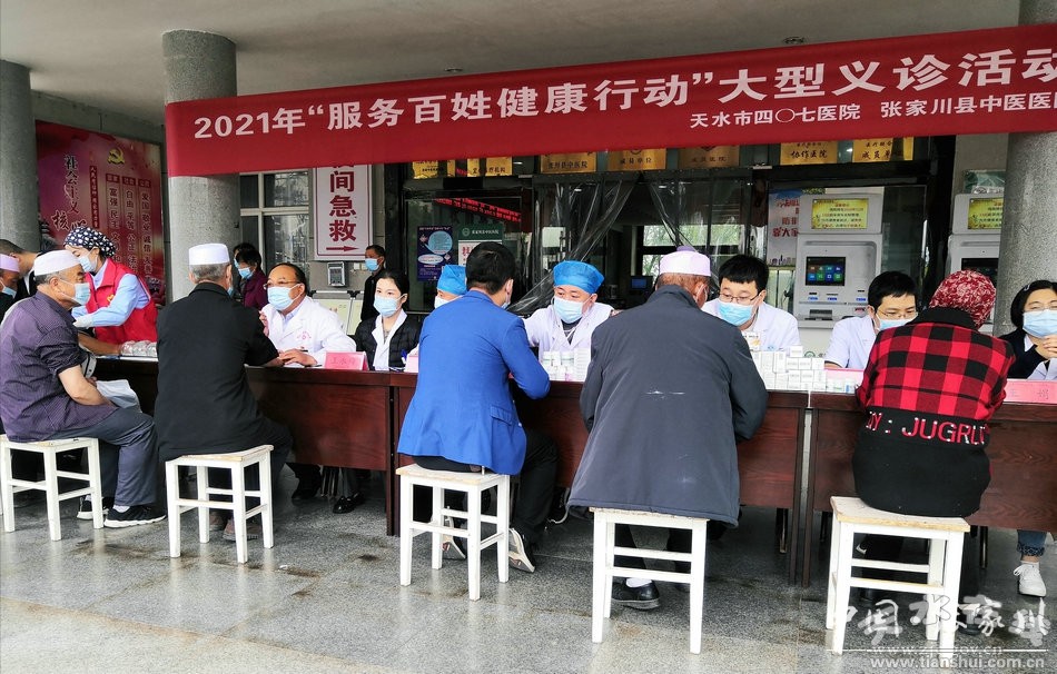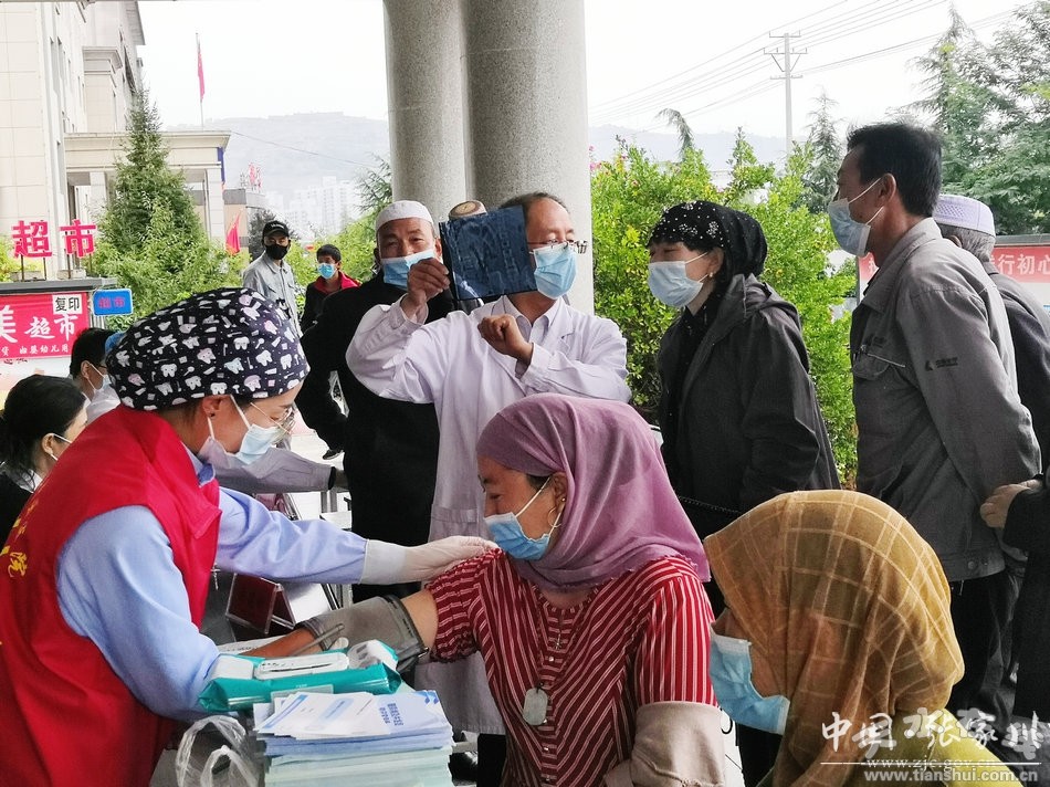 9月17日,在张家川县中医院门诊楼前排满了前来就诊的群众,由天津市滨海新区、天水市四〇七医院、县中医医院组成的专家医务人员联合开展了2021年“服务百姓健康行动”义诊活动,方便群众在家门口看病就医,提升公众防护意识和防护水平。