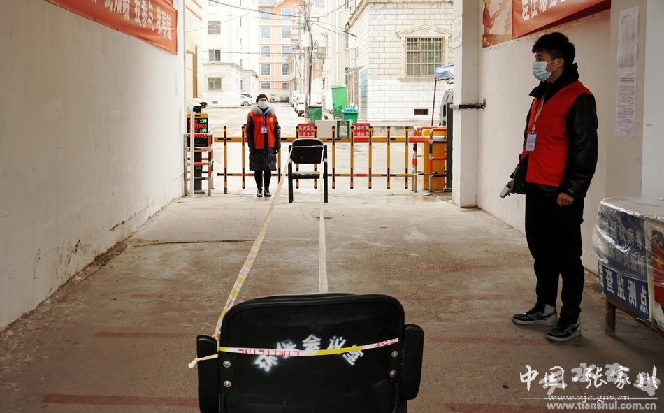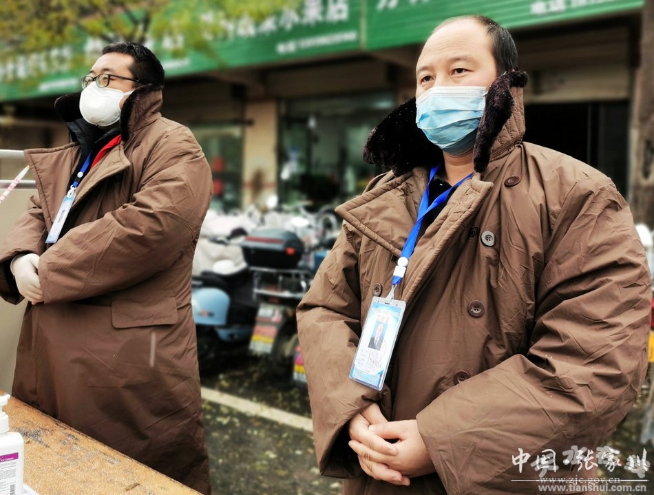 在五金厂小区门口,坚守一线的值班人员王刚、邵红周裹紧了衣服,有条不紊的对进出人员进行体温测量和扫码登记,邵红周告诉记者:“今天大风降温,天气比较寒冷,出入人员也比较少,但是我们一点都不能松懈,坚决把防控措施落到实处。”