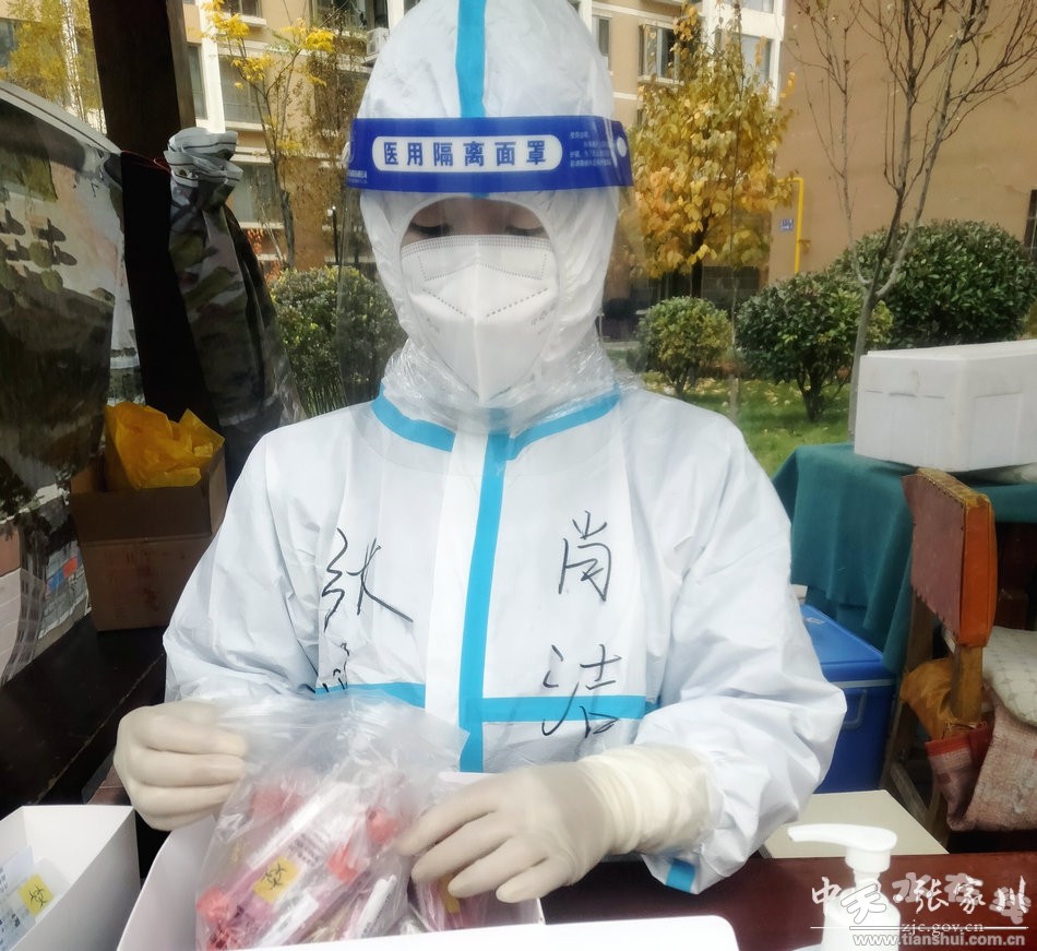 疫情就是命令,防控就是责任。当前,疫情防控任务艰巨而繁重。在支援麦积区采样点采样过程中,每当她听到耳边不断的谢谢,她全身的疲惫仿佛一扫而光。她说“疫情不散,我们不撤,我相信且坚信。”作为两个孩子的母亲,在家人最需要她的时候,她却为了更多人的健康,舍“小家”为“大家”。