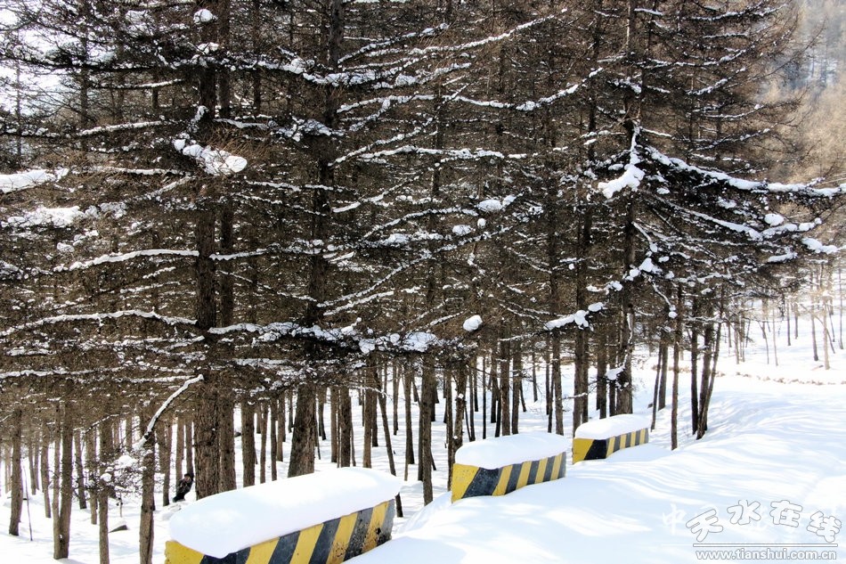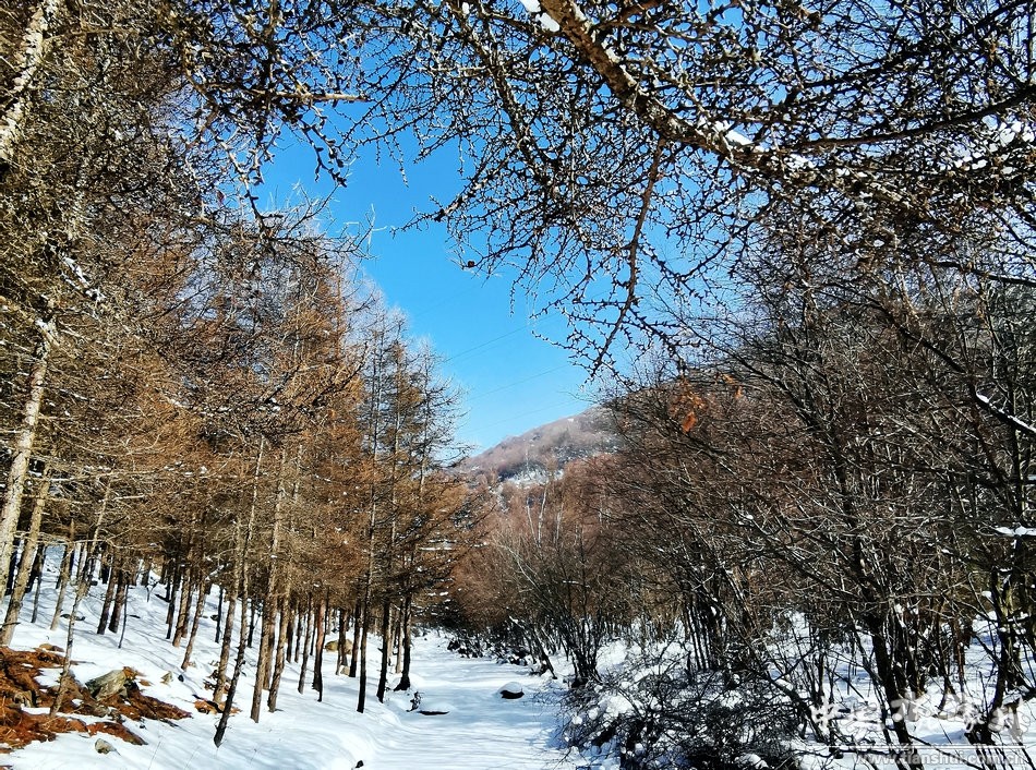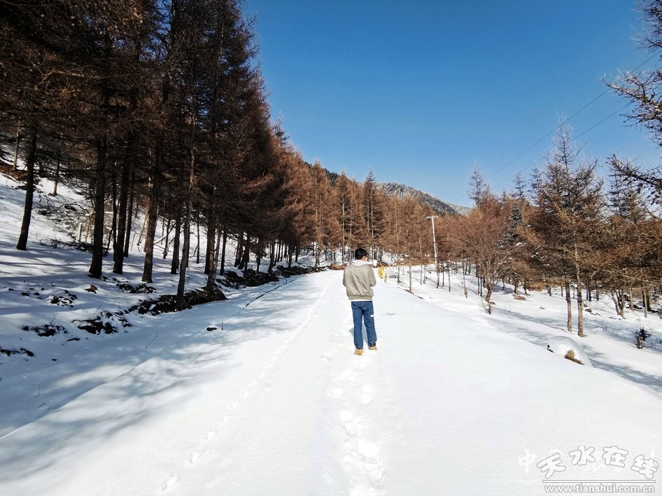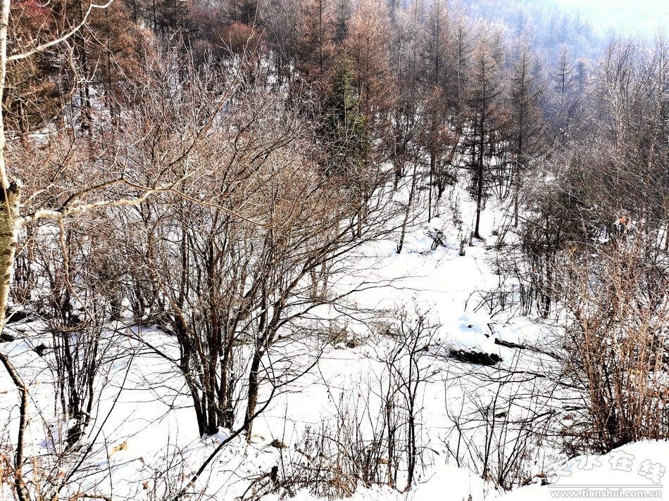 真是不可想象的景色。映入眼帘的是:冰天雪地,到处都是白色;从入口处到秦家塬林区,一路有雪和冰渣,区间车都不敢走,人只能踩着雪慢慢前行。