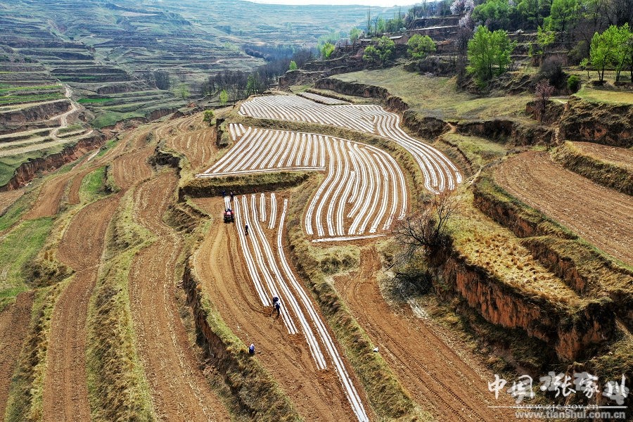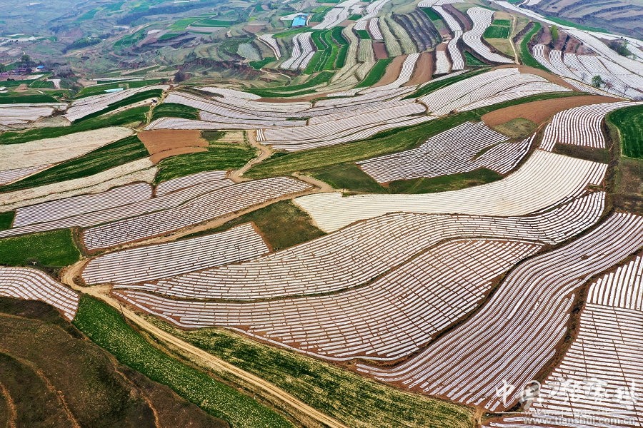 4月的张家川县山川大地,处处都有人民群众春耕生产的忙碌景象。在梁山镇,一块块层层叠叠的梯田,一片片绿油油的麦田和一条条白色的地膜,构成了一幅幅美丽的田园山水画。极目远望,让你在心中定格,且挥之不去,难以忘怀。