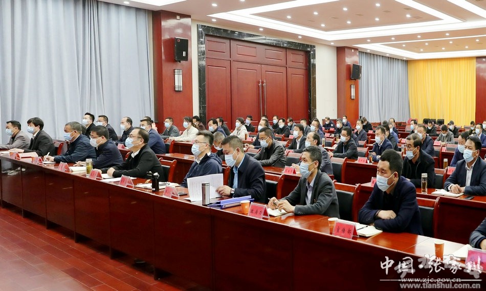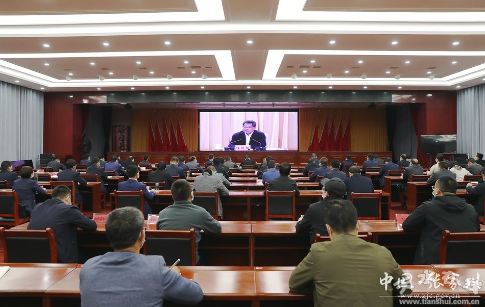 县领导高建平、朱华山、马少雄、田小红以及15个乡镇党政主要负责同志和县直部门负责人在张家川分会场收听收看视频会议。