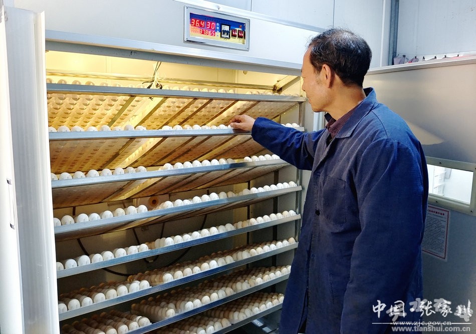 看着即将完成孵化的鸡蛋,养殖农场负责人张敬孝说:“自动化孵化器是我们最新引进的机器,这种机器一箱能孵育5000鸡苗,孵化期是21天,我们这次共孵化鸡苗5000只,等着这些鸡苗孵化后我会全部捐赠给大阳乡政府,由政府统一发放给群众,带动我镇的养殖业发展。”
