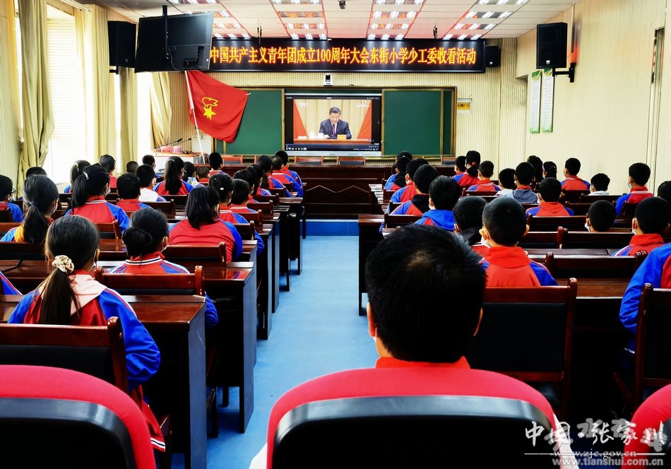 (张家川县东街小学少先队员收看中国共产主义青年团成立100周年大会)