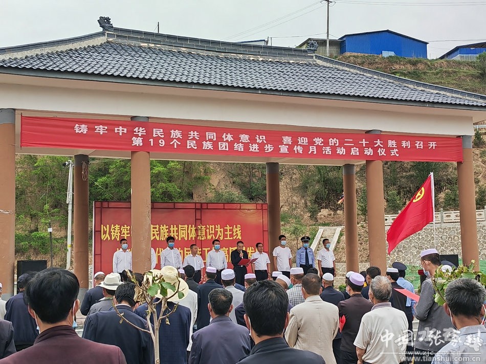 为进一步贯彻习近平总书记关于民族工作的重要论述,落实省市县第19个民族团结进步宣传月活动动员会议精神,巩固提升全国民族团结进步示范乡镇创建成果,近日,张家川县各乡镇开展第19个民族团结进步宣传月启动仪式,引导全县各族干部群众牢固树立休戚与共、荣辱与共、生死与共、命运与共的共同体理念,以实际行动喜迎党的二十大胜利召开和张家川回族自治县成立70周年。
