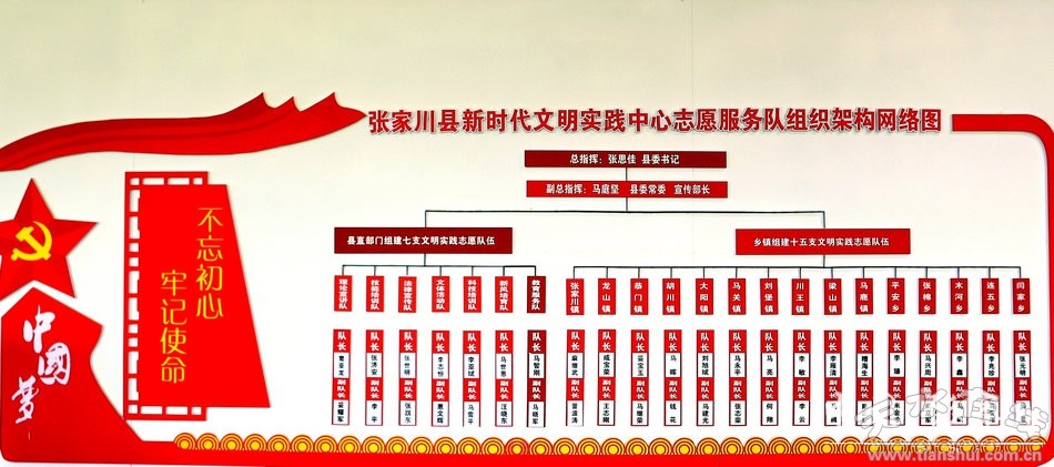 近年来,张家川县围绕新时代文明实践建设目标定位,坚持多维资源整合,探索推行“1+7+15+N”服务体系,构建起以县级服务队为总队、专业志愿服务队为重点,乡镇分队为主干,村组社区志愿服务支队为补充,上下贯通、供需对接的新时代文明实践志愿服务队伍体系。截止目前,张家川县在全国志愿服务系统注册志愿队伍423个,志愿者22071人,发起项目2121个,志愿服务总时长696612小时。深化拓展活动平台载体,在实现新时代文明实践中心(所、站)建设全覆盖和“六有”建设任务后,突出挖掘历史文化遗存、传统民俗文化和乡土乡韵,先后建成川王镇马达村红色教育基地、闫家乡车古村励志教育基地、马关镇历史记忆馆、马鹿镇花园村乡村记忆馆等新时代文明实践基地,着力推进“三中心一平台”融合,让群众通过“三中心一平台”这个主阵地实现信息、资源、活动、学习共享,文明实践活动网上网下同频共振。统筹城乡文明共建,推动乡村移风易俗,持续推进治理高价彩礼、破除薄养厚葬等陈规陋习,大力弘扬勤俭持家的传统美德和婚丧事简办的文明新风,规范村规民约,积极营造崇德向善的乡风民风,为成功创建省级文明县奠定了坚实基础。